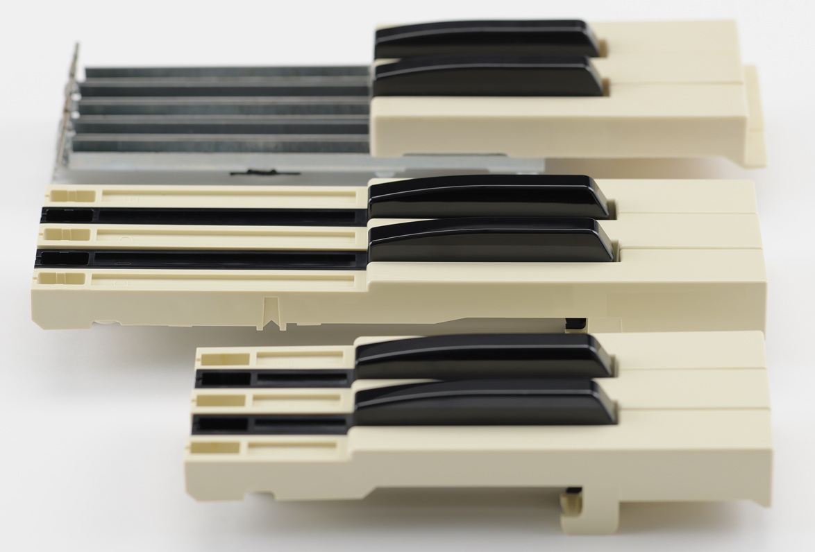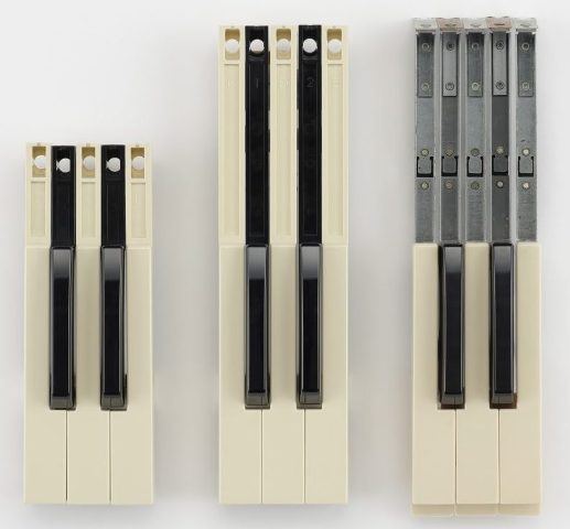 (*) Chaque touche active 6 contacts numériques permettant ainsi de combiner les harmoniques sonores nécessaires pour produire le son d’une note
