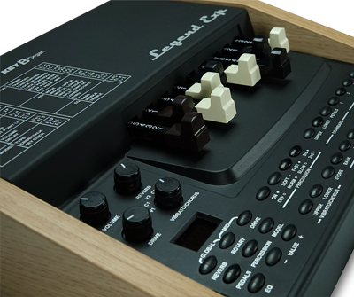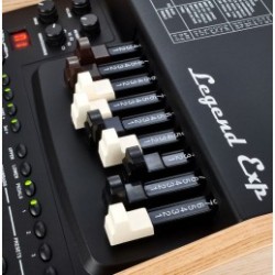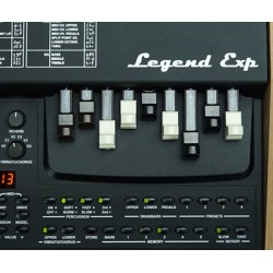 Les commandes en temps réel du Legend Expander incluent: Volume ; réverbérations ; Lecteur; Vibrato/Chœur ; percussion; Tirettes harmoniques (Drawsbars)