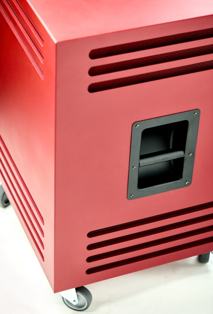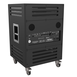 2 canaux amplifiés (woofer avec tambour rotatif + haut-parleur avec pavillon rotatif) Panneau de contrôle à l’arrière du cabinet