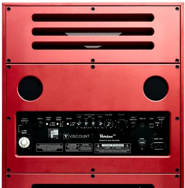 Le système VORTEX tout comme la série des amplificateurs rotatifs Spin Tone et Hurricane intègre un système hybride avec un pavillon rotatif (Trompes) dans la partie supérieure et deux haut-parleurs de graves dans la partie inférieure